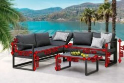 BEST Madagaskar Loungeset, Grau, Grandis/Fishbone-Geflecht, 5 Personen, Inkl. Tisch Und Polster