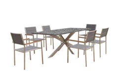 OUTFLEXX Esstischgarnitur, Teakholz, Ausziehtisch 195/295 X 90 Cm, 10 Armlehnensessel, Inkl. Polster