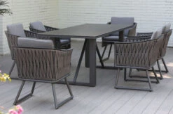 OUTFLEXX Set, Silber, 150 X 90 Cm, Edelstahl/Teak, Ausziehtisch, 6 Stühle, 2 Multipositionssessel