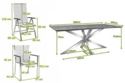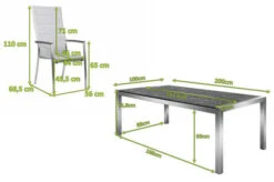 STERN Cardiff Esstischgruppe, Silber/taupe, Edelstahl/Teak, Tisch 200 X 100 Cm, 6 Stapelsessel