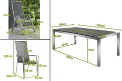 STERN New Top Esstischgarnitur, Graphit, Alu / Glas / Textil, Tisch 180/240x100cm, 6 Klappsessel