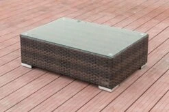 OUTFLEXX Beistelltisch, Braun Marmoriert, Polyrattan, 95 X 65 X 30 Cm, Inkl. Glasplatte