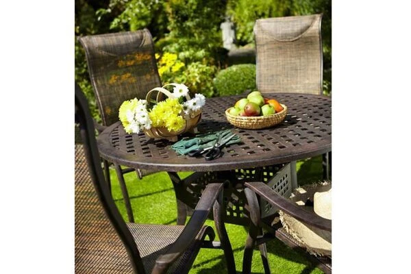 „Gusseiserne Handwerkskunst verbunden mit detailverliebten Design“ – so lässt sich diese hochwertige Esstischgruppe aus dem Hause Hartman wohl am besten beschreiben.