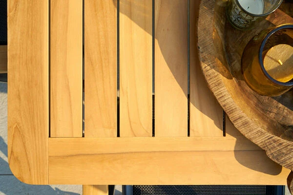 Das Set passt zu jedem Gartenstil und bietet genügend Platz für 8 Personen, damit Sie gemütliche Grillabende mit Ihrer ganzen Familie verbringen können. Die Leichtigkeit des modernen Designs werden Sie in Ihrem Garten nicht mehr missen möchten. Genießen Sie den Komfort, der jeden Aufenthalt im Freien zu etwas Besonderem werden lässt – die hochwertigen und pflegeleichten Materialien bieten Ihnen den nötigen Schutz, wenn das Wetter einmal nicht mitspielen sollte.Das Gestell des Tisches wird aus pulverbeschichtetem und rostfreiem Aluminium gefertigt. Wetterumschwünge und Regen machen diesem Gestell nichts aus. Rost hat keine Chance. Dieses im Trend liegende Material ist leicht, robust und stabil. Es ist pflegeleicht, wetterfest und ganzjährig für den Außeneinsatz geeignet. Kein Wunder also, dass viele der hergestellten Gartenmöbel inzwischen mit Aluminium verarbeitet werden.Die Tischleisten aus FSC-zertifiziertem Teakholz verleihen diesem Tisch einen ganz besonderen Charme. Darüber hinaus ist Teakholz besonders witterungsbeständig und hält sowohl Hitze und Frost, als auch Regen und Feuchtigkeit aus. Es hat außerdem aufgrund des hohen Anteils an holzeigenen Ölen einen natürlichen Schutz gegen Pilze und andere Schädlinge.Die Multipositionssessel von Hartman wissen durch die qualitativ hochwertige Verarbeitung und Stabilität zu überzeugen. Wegen der Armlehnen aus FSC-zertifiziertem Teakholz entsteht eine unverwechselbare Optik, die die Stühle zu einem echten Hingucker machen. Dank der vorteilhaften Stoffzusammensetzung der schwarzen 4×4 Textilenbespannung aus 70% Polyvinylchlorid und 30% Polyester profitieren Sie von einer langen Haltbarkeit. Sie werden gar nicht mehr aufstehen wollen, denn das witterungsbeständige Material ist durch seine Flexibilität auch ohne Auflagen sehr bequem. Das Gestell aus robustem Aluminium sorgt für ein geringes Eigengewicht von nur ca. 5,3 kg, sodass sich die Stühle kinderleicht verschieben oder an die gewünschte Position tragen lassen. Trotz des leichten Gewichts sind die Sessel äußerst stabil und können mit bis zu 130 kg belastet werden. Um Ihren Terrassenboden beim Verschieben zu schützen, verfügen die Füße über praktische Bodenschoner.