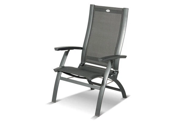 Die Multipositionssessel von Hartman wissen durch die qualitativ hochwertige Verarbeitung und Stabilität zu überzeugen. Dank der vorteilhaften Stoffzusammensetzung der Textilenbespannung in anthrazit aus 70% Polyvinylchlorid und 30% Polyester profitieren Sie von einer langen Haltbarkeit. Optisch stechen die Stühle durch durch das Detail der Teakholzarmlehnen heraus und runden die Optik des Sets in besonderer Weise ab. Sie werden gar nicht mehr aufstehen wollen, denn das witterungsbeständige Material ist durch seine Flexibilität auch ohne Auflagen sehr bequem. Das Gestell aus pulverbeschichtetem Aluminium in xerix sorgt für ein geringes Eigengewicht von nur ca. 10,7 kg, sodass Sie den Stuhl jederzeit verschieben und zwischen Sonne und Schatten wählen können. Trotz des leichten Gewichts ist der Multipositionssessel äußerst stabil und kann mit bis zu ca. 135 kg belastet werden. Um Ihren Terrassenboden beim Verschieben zu schützen, verfügen die Stühle über praktische Bodenschoner. Ob Sie beim Essen ganz aufrecht sitzen möchten oder sich in der Sonne zurücklehnen wollen, Sie finden immer dank der verstellbaren Lehne die richtige Sitzposition. Ebenso schnell und unkompliziert können Sie die Sessel zusammenklappen und platzsparend verstauen