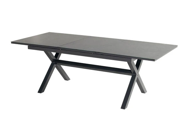 Das gekreuzte Gestell ist gefertigt aus pulverbeschichtetem Aluminium in der Farbe Xerix (Anthrazit) und wird optisch perfekt durch die Glaskeramik-Tischplatte, ebenfalls in der Farbe Xerix ergänzt. Die Maße von ca. 220 x 100 x 75 cm sorgen dafür, dass stets ausreichend Ablagefläche zur Verfügung steht. Bei Bedarf kann der Tisch auf eine Länge von ca. 280 cm ausgezogen werden, so finden bequem auch große Runden genügend Platz in Ihrem Garten. Dank der Ausziehfunktion hebt sich dieses Modell von den üblichen Tischen der Xanadu Serie ab – den Ausziehtisch erhalten Sie exklusiv bei uns.