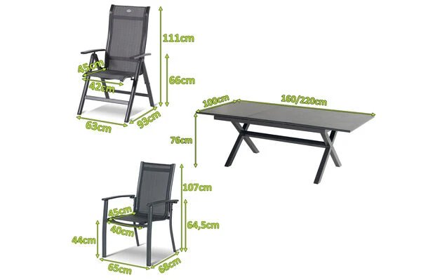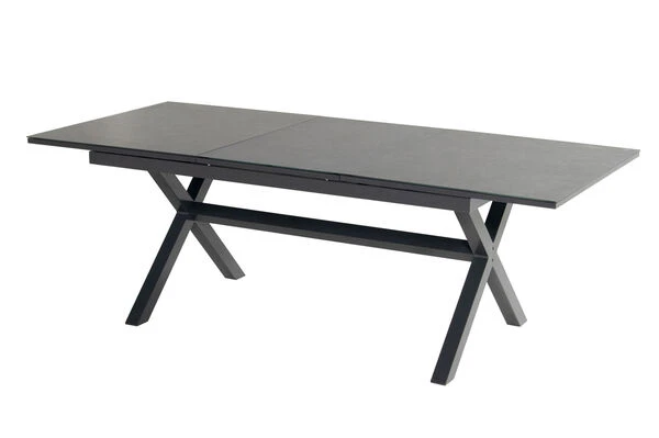 Das gekreuzte Gestell ist gefertigt aus pulverbeschichtetem Aluminium in der Farbe Xerix (Anthrazit) und wird optisch perfekt durch die Glaskeramik-Tischplatte, ebenfalls in der Farbe Xerix ergänzt. Die Maße von ca. 160 x 100 x 75 cm sorgen dafür, dass stets ausreichend Ablagefläche zur Verfügung steht. Bei Bedarf kann der Tisch auf eine Länge von ca. 220 cm ausgezogen werden, so finden bequem auch große Runden genügend Platz in Ihrem Garten. Dank der Ausziehfunktion hebt sich dieses Modell von den üblichen Tischen der Xanadu Serie ab – den Ausziehtisch erhalten Sie exklusiv bei uns.