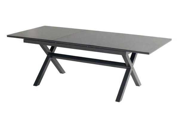 Das gekreuzte Gestell ist gefertigt aus pulverbeschichtetem Aluminium in der Farbe Xerix (Anthrazit) und wird optisch perfekt durch die Glaskeramik-Tischplatte, ebenfalls in der Farbe Xerix ergänzt. Die Maße von ca. 160 x 100 x 75 cm sorgen dafür, dass stets ausreichend Ablagefläche zur Verfügung steht. Bei Bedarf kann der Tisch auf eine Länge von ca. 220 cm ausgezogen werden, so finden bequem auch große Runden genügend Platz in Ihrem Garten. Dank der Ausziehfunktion hebt sich dieses Modell von den üblichen Tischen der Xanadu Serie ab – den Ausziehtisch erhalten Sie exklusiv bei uns.