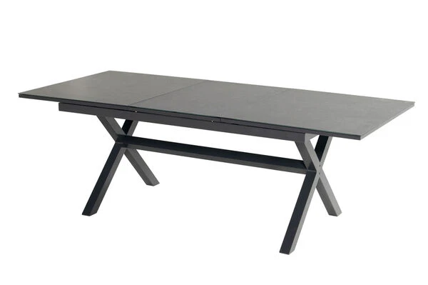 Das gekreuzte Gestell ist gefertigt aus pulverbeschichtetem Aluminium in der Farbe Xerix (Anthrazit) und wird optisch perfekt durch die Glaskeramik-Tischplatte, ebenfalls in der Farbe Xerix ergänzt. Die Maße von ca. 160 x 100 x 75 cm sorgen dafür, dass stets ausreichend Ablagefläche zur Verfügung steht. Bei Bedarf kann der Tisch auf eine Länge von ca. 220 cm ausgezogen werden, so finden bequem auch große Runden genügend Platz in Ihrem Garten. Dank der Ausziehfunktion hebt sich dieses Modell von den üblichen Tischen der Xanadu Serie ab – den Ausziehtisch erhalten Sie exklusiv bei uns.