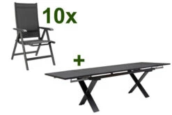 KETTLER BasicPlus Esstischgarnitur aus Aluminium/Textilene, Anthrazit, 10 Multipositionssessel und OUTFLEXX Ausziehtisch 180/280x100x78cm