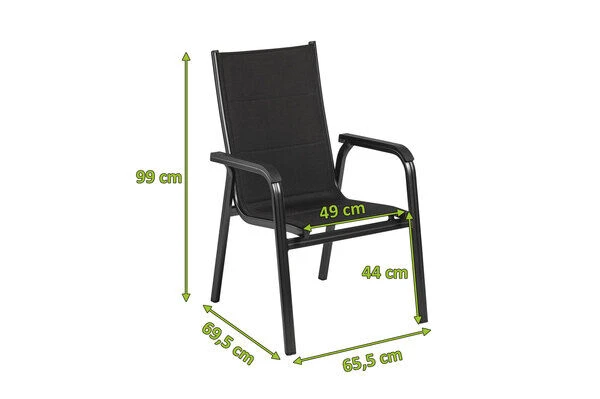 Mit dem Stapelsessel aus der BasicPlus Padded Serie bequem durch den Sommer. Das solide und formschöne Gestell besteht aus edlem, anthrazitfarbenen Aluminium. Das witterungsbeständige Material ist durch seine Flexibilität und seine zusätzliche Polsterung (padded) auch ohne Auflagen sehr bequem. Das formstabile, anthrazite Gewebe nimmt kein Wasser auf, ist atmungsaktiv, UV-Beständig und trocknet nach einem kurzen Schauer sehr schnell – insgesamt also der perfekte Begleiter in Ihrem Garten. Die Sessel lassen sich aufstapeln – wenn sie nicht benötigt werden können Sie sie platzsparend verstauen.