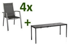 KETTLER Cubic/Altura Esstischgarnitur, anthrazit, Alu/HPL/Textilene, ca. 140/210×70 cm, 4 Stapelsessel
