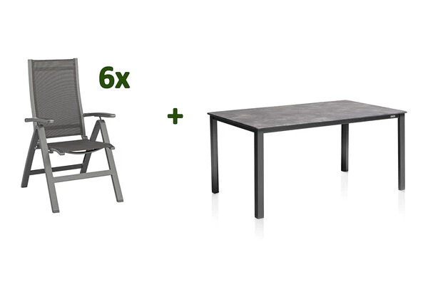 KETTLER Cubic/Altura Esstischgarnitur, anthrazit, Alu/Kettalit/Textilene, 160×90 cm, 6 Multipos