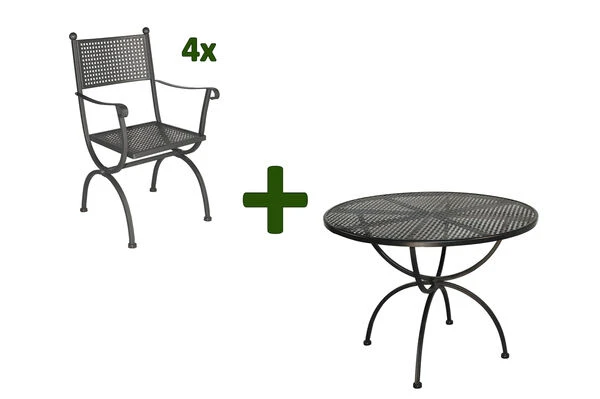 MBM Romeo Esstischgarnitur, marone, Schmiedeeisen verzinkt, Tisch Ø100 x 73 cm, 4x Sessel