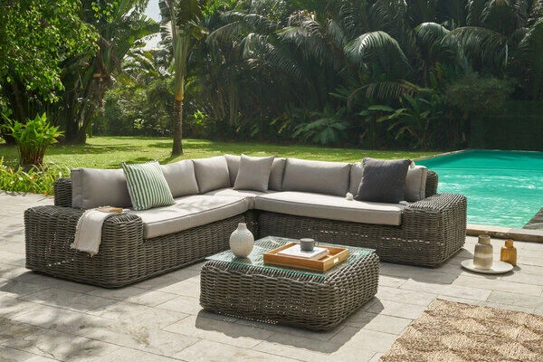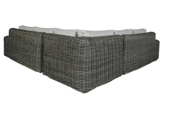 Bequeme Polster und abnehmbare Bezüge – Bitte nehmen Sie Platz. Bequem und komfortabel überzeugen die Polster dieser Ecklounge garantiert auch Sie. Die Bezüge der Kissen aus 100% Polyester in der Farbe royal stone grey sind angenehm auf der Haut und der verwendete Schaumstoff für die Kissenfüllung lässt Sie auch an langen Abenden nicht im Stich. Alle Bezüge haben einen Reißverschluss und können problemlos abgenommen und gewaschen werden. Ein verschütteter Drink oder eine über Bord gegangene Eiskugel brauchen Ihnen ab sofort also keine Sorgen mehr machen.