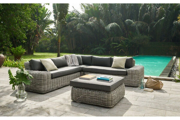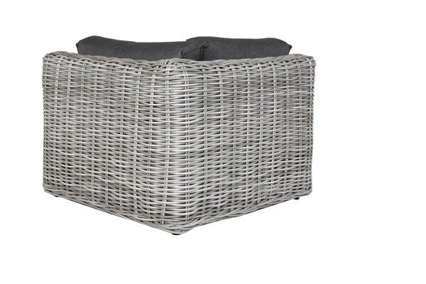 Bequeme Polster und abnehmbare Bezüge – Bitte nehmen Sie Platz. Bequem und komfortabel überzeugen die Polster dieser Ecklounge garantiert auch Sie. Die Bezüge der Kissen aus 100% Polypropylen Olefin in der Farbe anthrazit sind angenehm auf der Haut und der verwendete Schaumstoff für die Kissenfüllung lässt Sie auch an langen Abenden nicht im Stich. Alle Bezüge haben einen Reißverschluss und können problemlos abgenommen und gewaschen werden. Ein verschütteter Drink oder eine über Bord gegangene Eiskugel brauchen Ihnen ab sofort also keine Sorgen mehr machen.