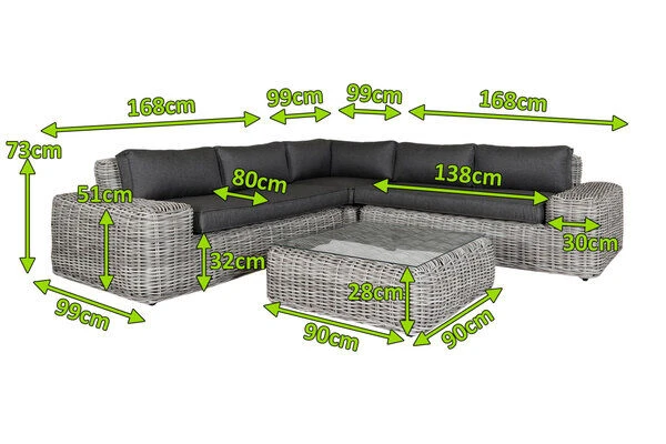 - 2-Sitzer links: 99 x 168 x 73 cm