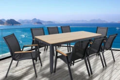 OUTFLEXX® 9-teilige Esstischgarnitur aus Aluminium/Holzimitat in anthrazit matt/natur mit Platz für 8 Personen