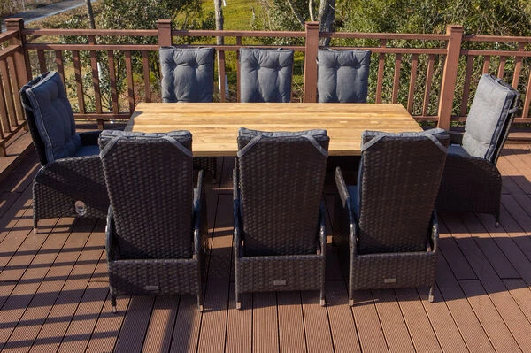 Machen Sie diese natürliche Esstischgruppe zum Mittelpunkt Ihrer Terrasse!