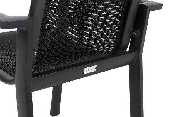 | Hoher Sitzkomfort Das für die Sitzfläche und Rückenlehne verwendete Textilenegewebe bietet neben einer sehr hohen Witterungsbeständigkeit auch luftdurchlässige Eigenschaften. Dadurch sitzt es sich ganz besonders komfortabel auf diesen Sesseln – auch ohne Polsterauflage. |