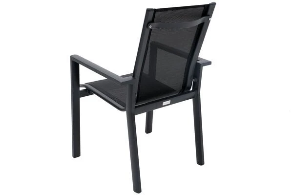 Das Set besteht aus einem Esstisch und 8 Stapelsesseln. Die stylischen Sessel laden jederzeit zum Verweilen ein und sind die perfekten Begleiter in Ihrem Garten. Für das solide Gestell kommt korrosionsbeständiges Aluminium zum Einsatz. Ihre designstarken Armlehnen sorgen für zusätzlichen Komfort. Bespannt werden die durchgehenden Rücken- und Sitzflächen mit Textilene im passenden Schwarzton. Es ist unglaublich hautsympathisch und sorgt für ein herrliches Sitzgefühl, das Sie auch in der Sommerhitze nicht im Stich lässt. Die Gesamtmaße liegen jeweils bei ca. 60 x 69 x 93,5 cm. Mit einer Sitzfläche von ca. 42,5 x 46,5 cm sitzen Sie stets bequem. Trotz des schlanken Designs und geringen Gewichtes von ca. 3,2 kg ist jeder Sessel mit bis zu ca. 160 kg belastbar. Sie können die Leichtgewichte problemlos an Ihren Lieblingsplätzen aufstellen, nach der Sonne ausrichten oder zur Aufbewahrung stapeln. Nehmen Sie Platz und lassen Sie den Alltagsstress hinter sich.