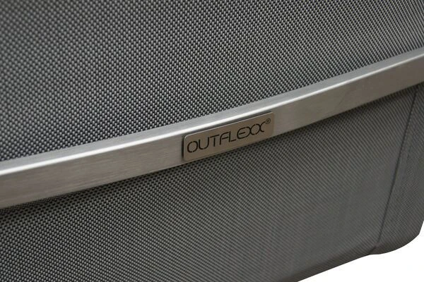 OUTFLEXX® Stuhl, silber, Edelstahl/Textilene, padded, Armlehnen aus FSC-Teakholz