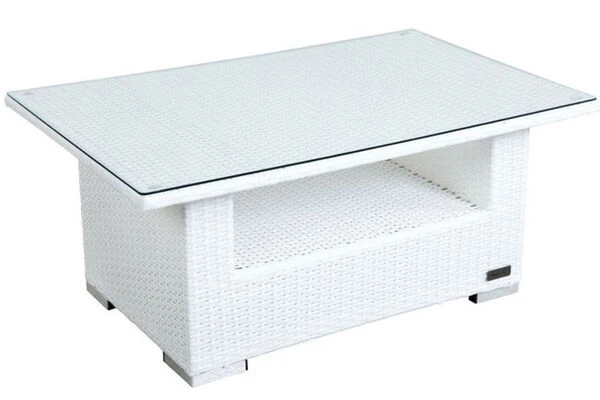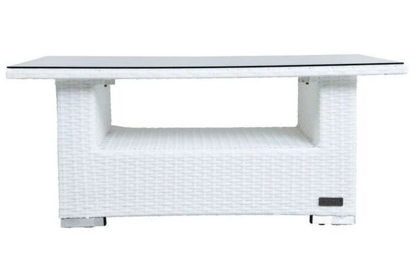 OUTFLEXX® ModulelementeLine: Poly Rattan Tisch in Weiß mit Glasplatte