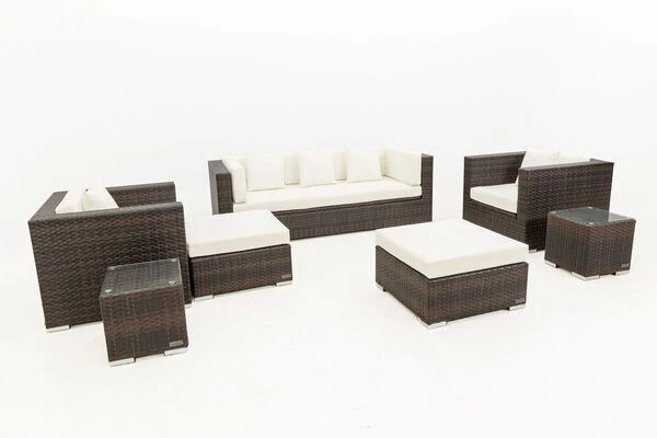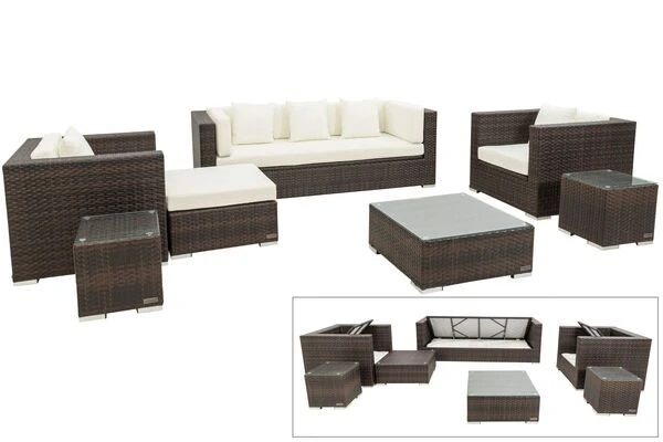 Loungemöbel-Set aus Polyrattan mit Kissenboxfunktion in braun-marmoriert für bis zu 6 Personen
