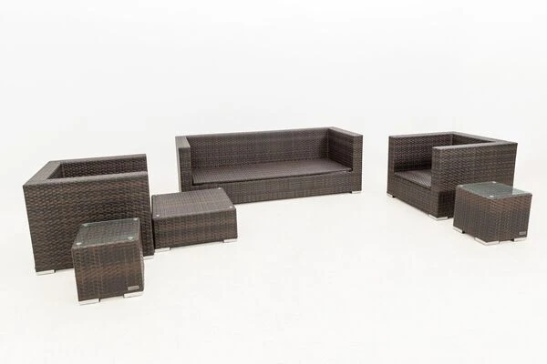 Laden Sie doch einmal wieder Freunde und Familie zu sich nach Hause ein und genießen Sie das Zusammensein. Mit dieser Sitzgruppe aus braun marmoriertem flachen Polyrattan haben Sie zukünftig Platz für bis zu 6 Personen und einem entspannten Familiensonntag oder dem spannend spaßigen Spieleabend mit Freunden steht nichts mehr im Wege.