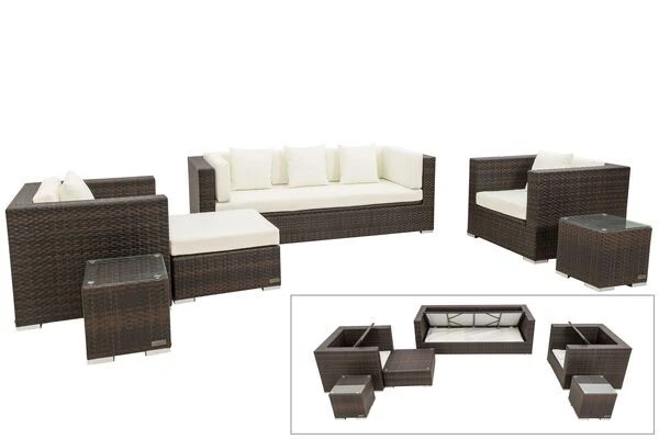 Loungemöbel-Set aus Polyrattan mit Kissenboxfunktion in braun-marmoriert für bis zu 6 Personen