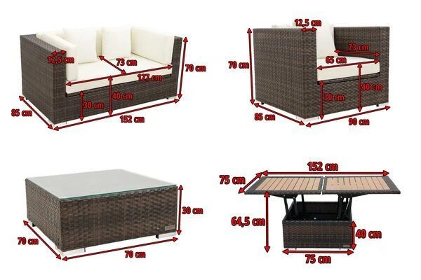 Laden Sie doch einmal wieder Freunde und Familie zu sich nach Hause ein und genießen Sie das Zusammensein. Mit dieser Sitzgruppe aus braun marmoriertem flachen Polyrattan haben Sie zukünftig Platz für bis zu 5 Personen und einem entspannten Familiensonntag oder dem spannend spaßigen Spieleabend mit Freunden steht nichts mehr im Wege.