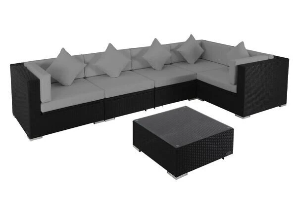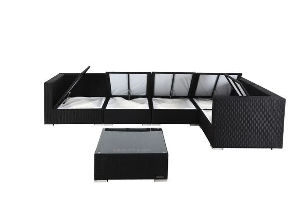Polyrattan-Sitzgruppe mit Kissenboxfunktion inkl. Kaffeetisch in schwarz für 5 Personen
