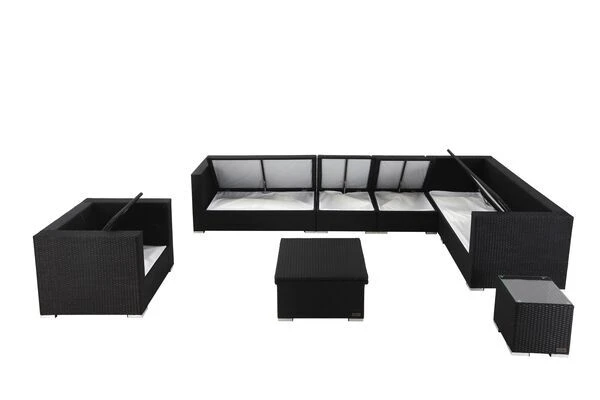 Für Ihr Outdoor Wohnzimmer: die OUTFLEXX® XXL Gartenlounge mit Kissenboxfunktion inkl. höhenverstellbaren Loungetisch in schwarz