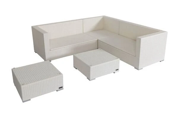 Diese gemütliche Loungegruppe besteht aus 5 Modulen, die Sie beliebig anordnen können. Sie bestimmen somit selbst, wie sich die Möbel auf Ihrer Terrasse am besten präsentieren. Ihre neuen Gartenmöbel sind äußerst pflegeleicht und strapazierfähig, da die verwendete Faser sowohl Hitze und Frost als auch UV-Strahlen, Salzwasser und Chlor unbeschadet hinnimmt und nichts von ihrer ursprünglichen Schönheit einbüßt. Im Inneren befindet sich ein rostfreies Aluminiumgestell, welches für die nötige Stabilität sorgt und aufgrund des geringen Gewichts einen einfachen Platzwechsel ermöglicht. Der 1-Sitzer ist mit bis zu ca. 150 kg belastbar, beim 2-Sitzer Sofa sind es sogar ca. 300 kg. Alle Module verfügen über edle Aluminiumfüße, die dank der Kunststoffnoppen Ihren Bodenbelag schonen und einen schönen Kontrast zur flachen Polyrattanfaser bilden.