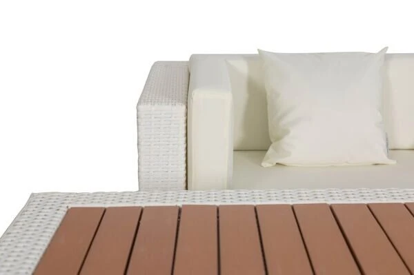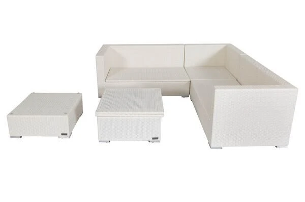 Diese gemütliche Loungegruppe besteht aus 5 Modulen, die Sie beliebig anordnen können. Sie bestimmen somit selbst, wie sich die Möbel auf Ihrer Terrasse am besten präsentieren. Ihre neuen Gartenmöbel sind äußerst pflegeleicht und strapazierfähig, da die verwendete Faser sowohl Hitze und Frost als auch UV-Strahlen, Salzwasser und Chlor unbeschadet hinnimmt und nichts von ihrer ursprünglichen Schönheit einbüßt. Im Inneren befindet sich ein rostfreies Aluminiumgestell, welches für die nötige Stabilität sorgt und aufgrund des geringen Gewichts einen einfachen Platzwechsel ermöglicht. Der 1-Sitzer ist mit bis zu ca. 150 kg belastbar, beim 2-Sitzer Sofa sind es sogar ca. 300 kg. Alle Module verfügen über edle Aluminiumfüße, die dank der Kunststoffnoppen Ihren Bodenbelag schonen und einen schönen Kontrast zur flachen Polyrattanfaser bilden.