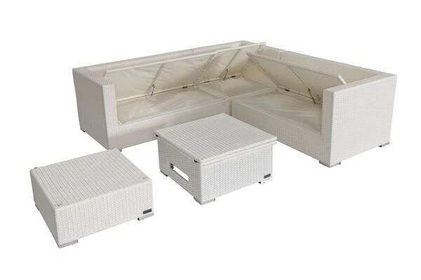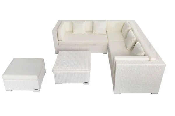 Loungemöbel-Set aus Polyrattan mit Kissenboxfunktion in weiß für bis zu 6 Personen