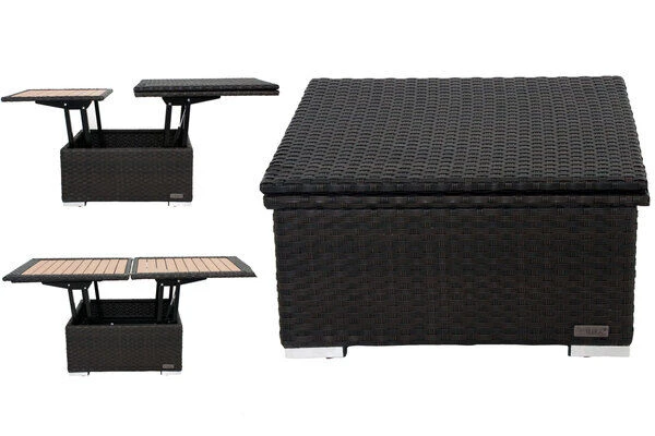 - 1x OUTFLEXX® Polyrattan höhenverstellbarer Loungetisch braun, 75/152x75x40/64,5cm, ca. 33 kg