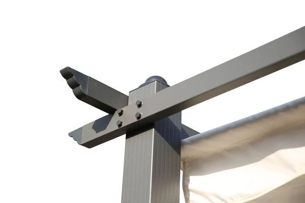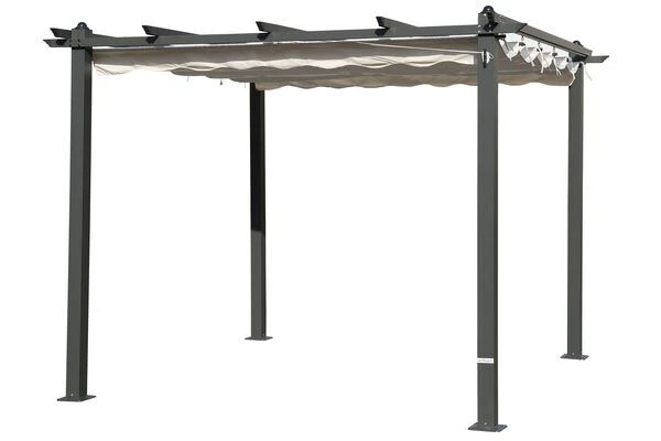 Durch einfaches Schieben kann die Bespannung am Dach geöffnet oder geschlossen werden, so dass je nach Bedarf über Schatten- und Sonnenplätze entschieden werden kann. Das Gestell der Pergola, das die ca. 2,6 x 2,6 Meter große, wasserabweisend imprägnierte Bespannung aushält, ist aus pulverbeschichtetem Aluminium gefertigt und in dezemntem Anthrazit gehalten. Eine Bespannung in der Farbe beige ergänzt das zeitlose Design. Diese ist aus 100% Polyester (220 g/m²) gefertigt und wird durch Dachstreben aus pulverbeschichtetem Aluminium gehalten. Die verwendeten hochwertigen Materialien und deren Verarbeitung sorgen dafür, dass die Pergola besonders strapazierfähig und witterungsbeständig ist.