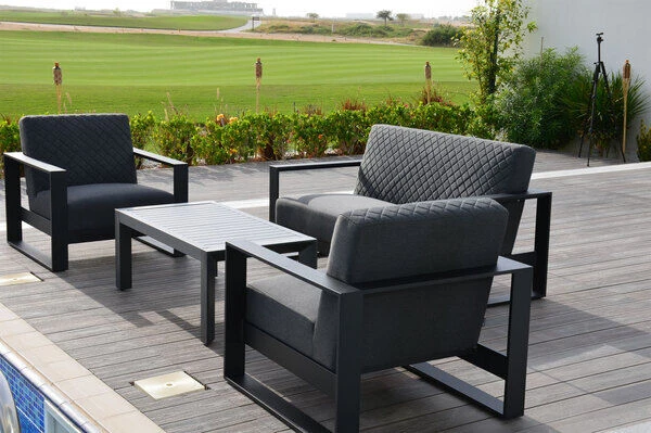 Für Ihre individuelle Gartengestaltung ist der Sessel (ca. 88 x 91 x 86 cm) auch einzeln erhältlich. Sie können ihn vielfältig kombinieren. Die Sitzflächen sind ca. 58 cm tief und die Sitzhöhe beträgt ca. 43 cm. Der Oberstoff in der Sunbrellafarbe sooty sowie die gesteppte Oberfläche der Rückenlehne unterstreichen den einzigartigen Charakter des Stuhls. Für das Gestell wird robustes, pulverbeschichtetes Aluminium verwendet, welches mit der Schaumstoff-Sunbrella Kombination eine solide Sitzmöglichkeit bietet. Sie höchsten Sitzgenuss und die Entspannung kommt fast von allein.