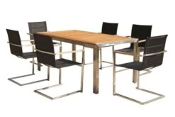 Das verwendete Teakholz ist FSC-zertifiziert und stammt damit aus verantwortungsvollen Quellen. So können Sie sich guten Gewissens zurücklehnen und sich so richtig entspannen.Teakholz und Edelstahl sind besonders witterungsbeständig und halten sowohl Frost und Hitze als auch Feuchtigkeit und Regen aus. Teakholz hat aufgrund des hohen Anteils an holzeigenen Ölen einen natürlichen Schutz gegen Pilze und Schädlinge. So beschränkt sich die Pflege Ihrer neuen Gartenmöbel auf ein Minimum und Sie können Ihre Zeit im Garten mit angenehmen Tätigkeiten verbringen.
