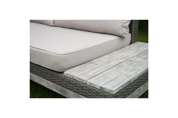 | Vintage-Look Die flache Polyrattan-Geflecht-Kombination schafft nicht nur eine markante Optik, sondern auch besonders stabil, wasserabweisend und wetterfest. | |