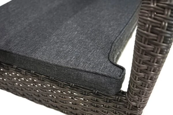 Das Untergestell der Stühle besteht aus pulverbeschichtetem Stahl, das des Tisches aus pulverbeschichtetem Aluminium, dies macht es nicht nur stabil, sondern sorgt auch dafür, dass es sich aufgrund des relativ geringen Gewichts ganz leicht hin und her stellen lässt. Das Gestell wird mit Polyrattangeflecht bespannt. Das doppel-halbrunde Geflecht ist in der Farbe grau-braun-meliert gehalten und passt so wunderbar zu allen möglichen Terrasseneinrichtungen. Das gemütliche Sitzpolster (100 % Polyester (230 g/m³)) mit einer Stärke von ca. 3 cm sorgt für höchsten Sitzkomfort. Farblich ist das anthrazitfarbene Polster perfekt auf das Geflecht abgestimmt.