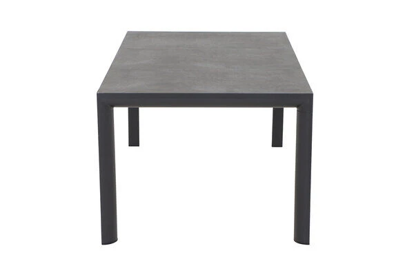 Wer das Besondere liebt ist mit diesem Esstisch bestens bedient. Der Tisch bietet mit seinen Maßen von ca. 180 x 100 x 74 cm Platz für ca. 6 Personen – so steht dem gemütlichen Mittagessen mit der Familie nichts mehr im Wege. Das Gestell wurde aus pulverbeschichtetem Aluminium in matt anthrazit hergestellt, was den Tisch besonders haltbar macht. Die Tischplatte besteht aus hochwertigem Keramik, während die Tischbeine für ein weiteres optisches Highlight sorgen. Durch die großzügige Unterschubhöhe kann man gemütlich mit vielen Arten von Sesseln an diesem Tisch Platz nehmen. Der Tisch hat ein Gewicht von ca. 59 kg, und ist somit perfekt gegen Windstöße geschützt. Die Fußkappen bestehen aus schwarzem Kunststoff und schützen den Boden vor unschönen Kratzern beim Verrücken des Möbelstücks.