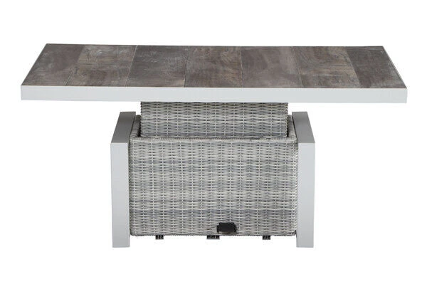 SIENA GARDEN Corido Lifttisch aus Gardino®-Geflecht/Keramik in ice grey, 130x75cm für 4 Personen
