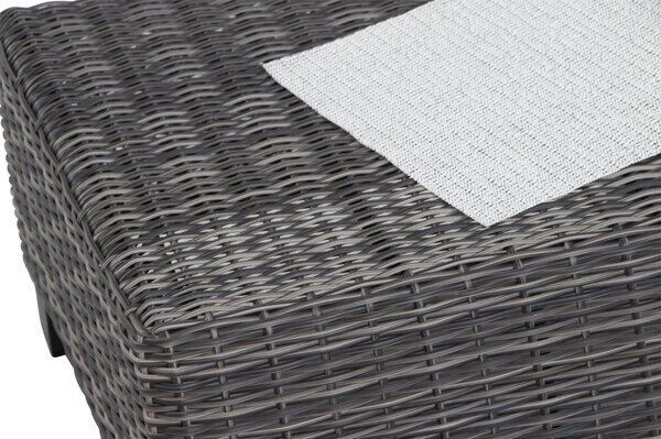 | Stabiles Polyrattan-Geflecht Das halbrunde Polyrattan-Geflecht GARDINO® in der Farbe charcoal grey zeichnet sich besonders durch seine Lichtechtheit und Stabilität aus. Es ist zudem besonders wasserabweisend und wetterfest. Das robuste Material schützt das Möbelstück somit bestens vor Witterungseinflüssen. |