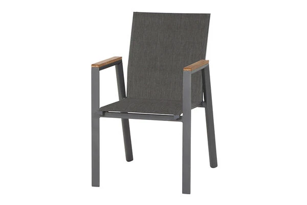 6x SIENA GARDEN Gomera II Stapelsessel, matt graphit, Alu/FSC-Teak/Texfabric, ca. 63,5x57x87,5 cm