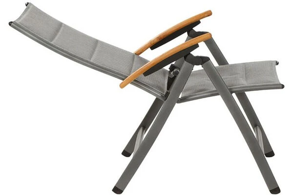 Dieser Klappsessel ist nicht nur ein Highlight in Sachen Optik, sondern weiß auch durch seinen Komfort und durch seine qualitative Verarbeitung zu überzeugen. Für ein komfortables Sitzen sorgt die hochwertige Texfabric Bespannung, die den Klappsessel auch ohne Auflagen äußerst bequem macht. Außerdem ist die Rückenlehne 10-fach verstellbar, sodass der Sessel je nach Bedarf in eine Sitz- oder Liegeposition gebracht werden kann. Das zeitlose Design aus einem Aluminiumgestell mit einer Textilenbespannung in der Farbe grau, macht den Sessel zu einem optischen Highlight für jede Terrasse. Armlehnen aus Teakholz ergänzen das edle Design. Dank der verwendeten Materialien hat dieser Multipositionssessel das sehr geringe Eigengewicht von ca. 5,9 kg, wodurch er leicht zu handhaben ist und bei Bedarf schnell und einfach zusammengeklappt und platzsparend verstaut werden kann.
