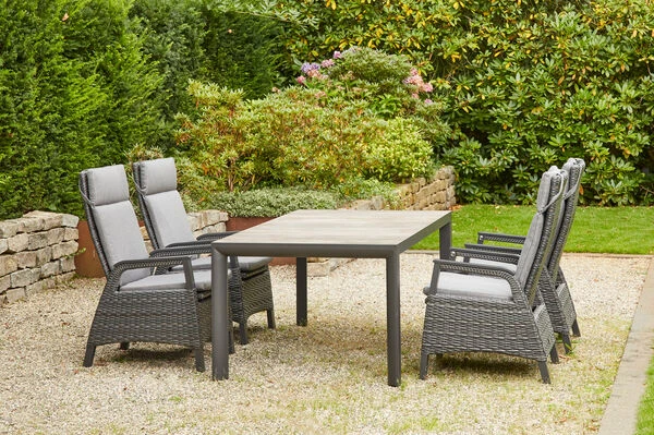 SIENA GARDEN Silva/Solea Dining Set, anthrazit/blau/grau, Alu/Gardino®-Geflecht/Keramik, ca. 183 x 90cm, inkl. 4 Diningsessel, stufenlos verstellbar