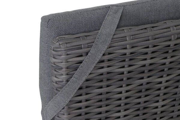 | Stabiles Polyrattan-Geflecht Das halbrunde Polyrattan-Geflecht GARDINO® zeichnet sich besonders durch seine Lichtechtheit und Stabilität aus. Es ist zudem besonders wasserabweisend und wetterfest. Das robuste Material schützt die Möbelstücke somit bestens vor Witterungseinflüssen. | |