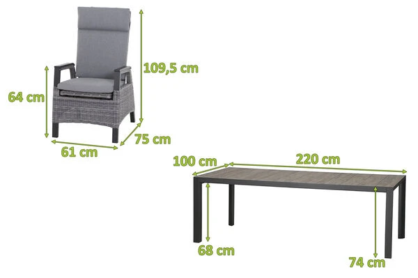 SIENA GARDEN Silva/Solea Dining Set, anthrazit/grau/blau, Alu/Gardino®-Geflecht/Keramik, ca. 220 x 100cm, inkl. 6 Diningsessel, stufenlos verstellbar